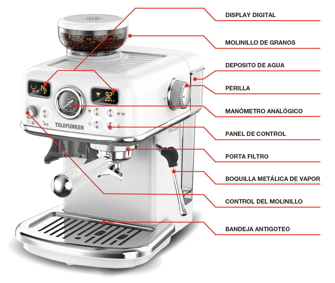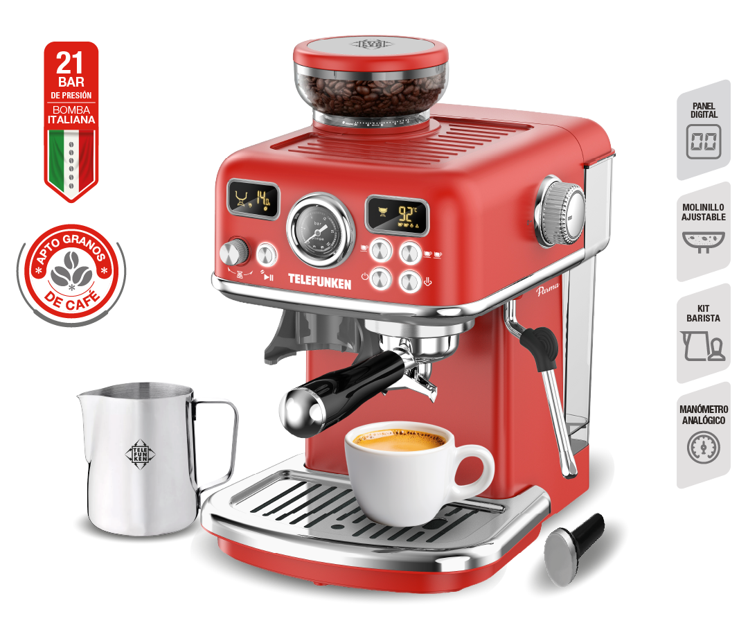 La Cafetera Parma es mucho más que una máquina express; es una experiencia integral para los verdaderos amantes del café. Con su molinillo integrado, te permite disfrutar del aroma y sabor inigualable del café recién molido en cada preparación, elevando tus mañanas a un nivel profesional.
